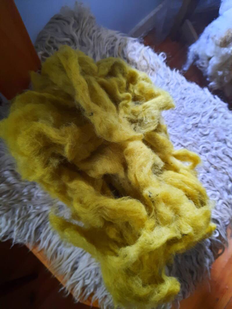 Uld - helst hvid eller lysegrå, enten som karteflor eller som garn i nøgler. Hele stofstykker fungerer selvfølgelig også, men der kan opstå pletter.